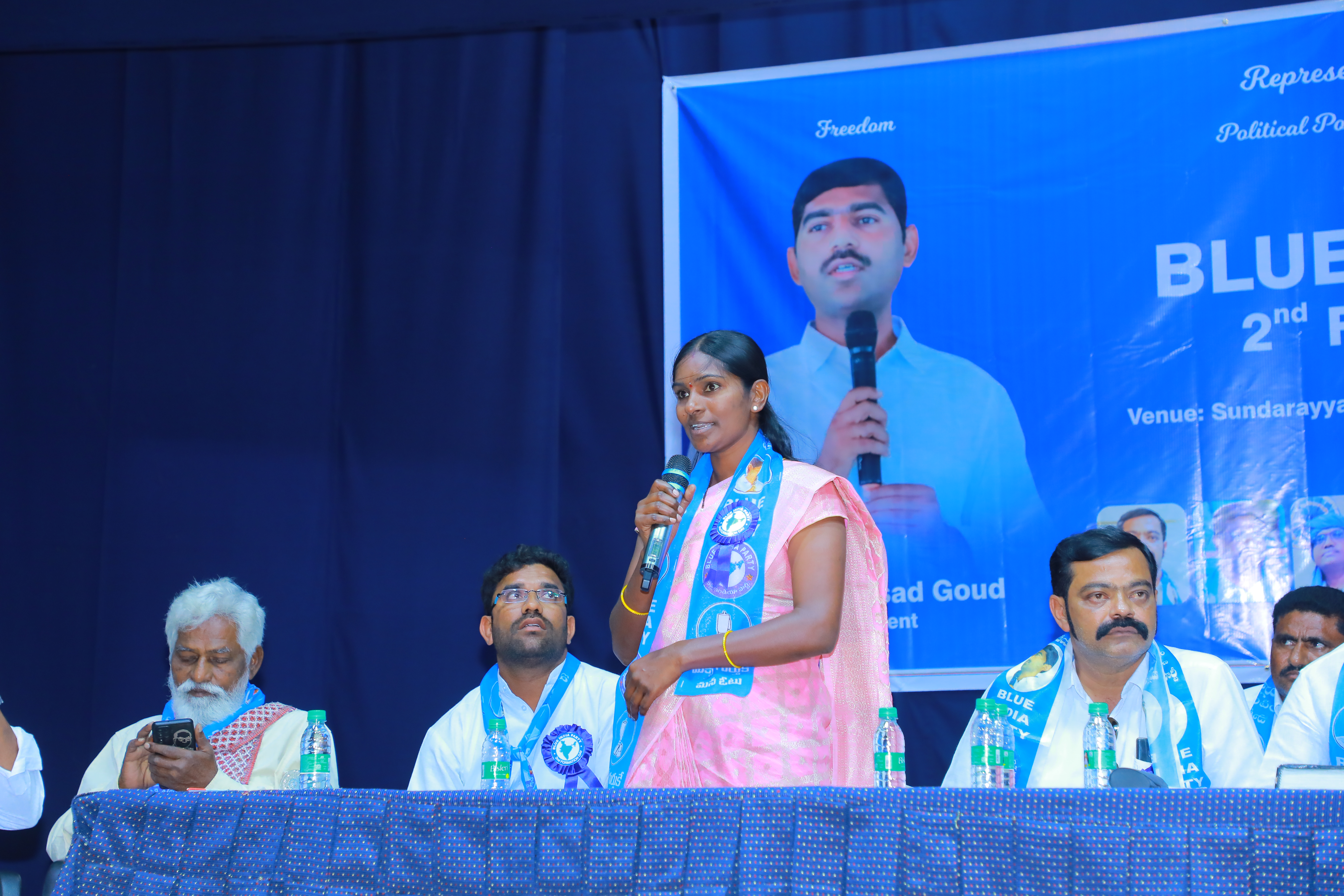President of the Blue India Party is Mr. Bongu Prasad Goud. He is a prominent leader who frequently represents the party in public forums and rallies. Bongu Prasad Goud is known for advocating strong social justice measures, especially focused on upliftment and representation of marginalized Bahujan communities. Under his leadership, the Blue India Party continues to emphasize Phula Ambedkar philosophy, social equality, and inclusive progress. Other key leaders and attorneys like Bhupal Kammeta and Madhu Bhumpally also contribute to the party’s efforts in various capacities.